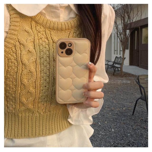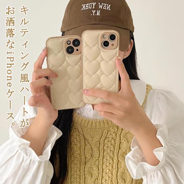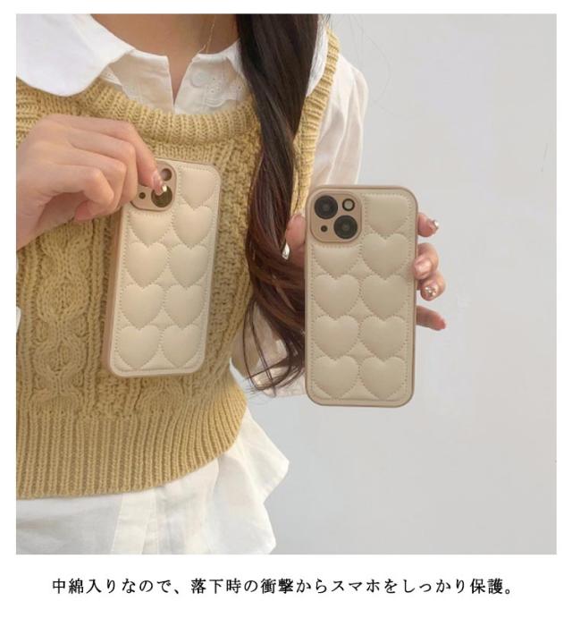 韓国 ケース ハート ケース スマホケース iPhone15 ケース iPhone16 iPhone16 iPhone16plus キルティング iPhone16Pro かわいい おしゃれ レザー くすみカラー もこもこ 中綿入り 耐衝撃 iPhone15pro 15promax ケース iPhone14 13pro ケース iPhone12