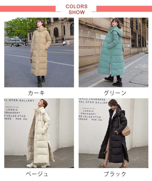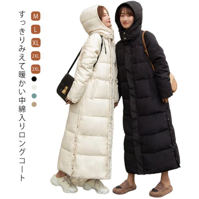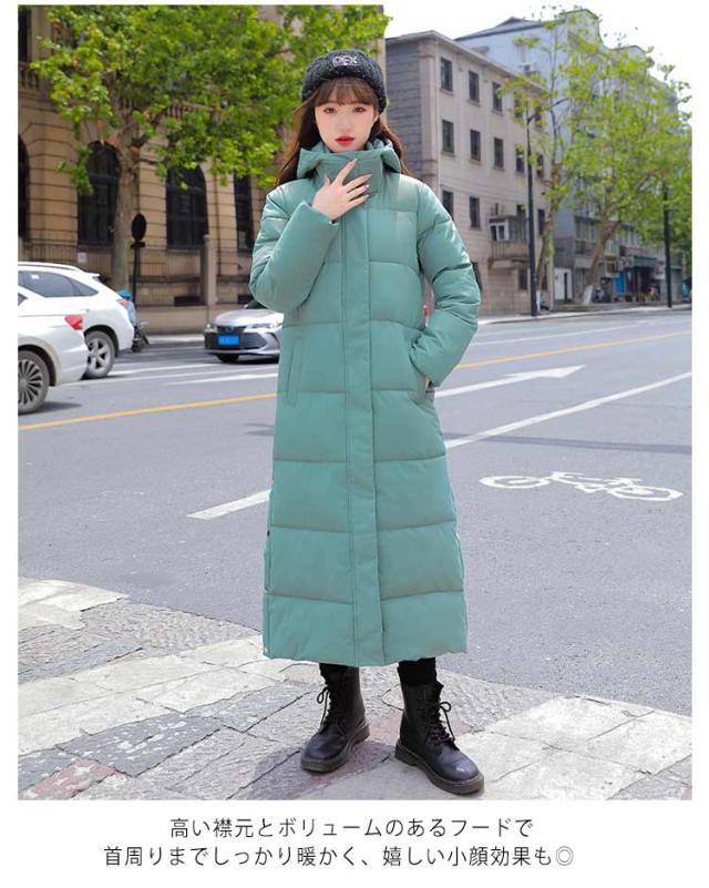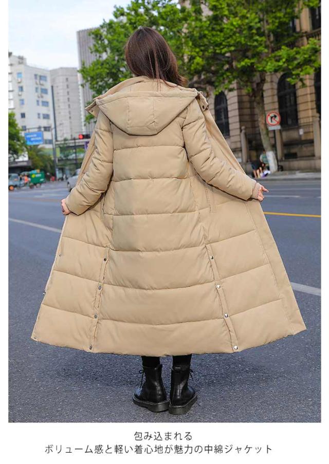 中綿コート ジャケット レディース ハイネック フード付き マキシ丈 ジップアップ 厚手 アウター 羽織り 上着 スタンドカラー 暖かい 防寒着 洗える 冬