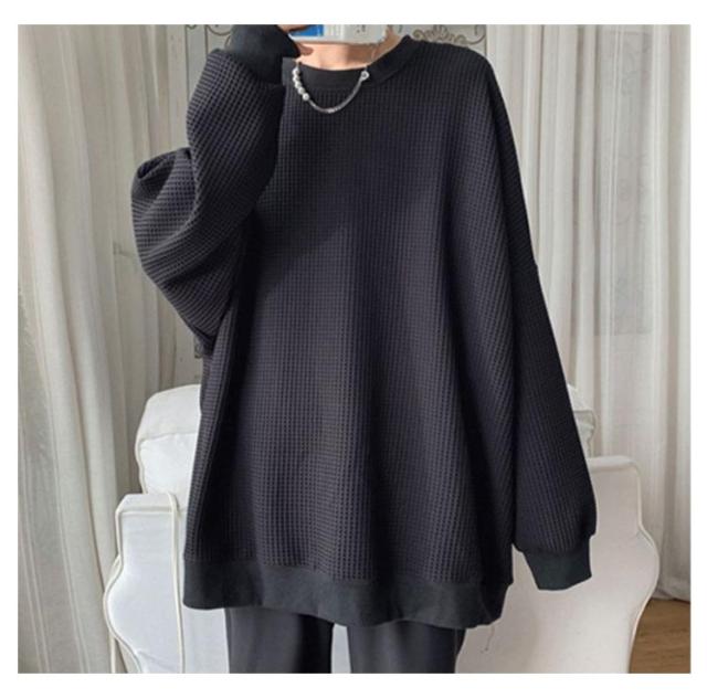 カットソー 大きいサイズ ワッフルTシャツ メンズ 長袖 クルーネック ドロップショルダー ゆったり ロンT オーバーサイズ 長袖 韓国風 インナー ビッグシルエット トップス ワッフルTシャツ 20代 30代