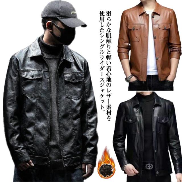 メンズ 【薄手&厚手】レザージャケット シンプル ライダースジャケット おしゃれ メンズ 父の日 【薄手&厚手】レザージャケット フェイクレザー 皮ジャン 革ジャン ブルゾン アウター 無地 裏起毛 ジャンパー 秋 冬 大きいサイズ 黒 バイクジャケット 防寒 かっこいい