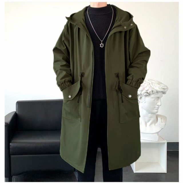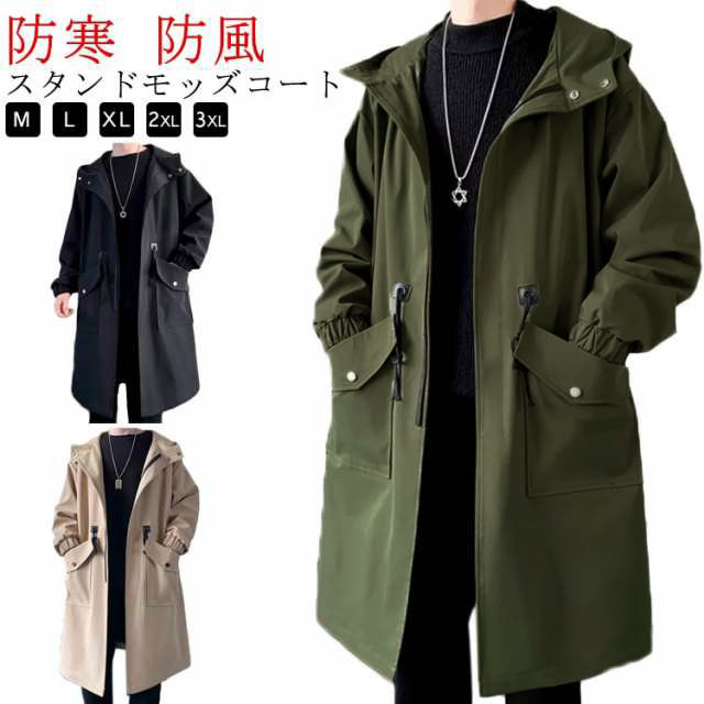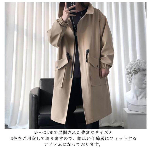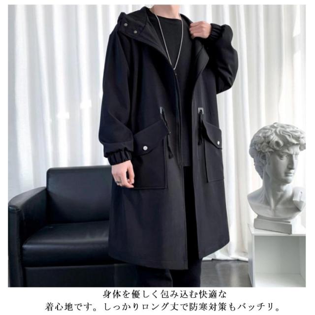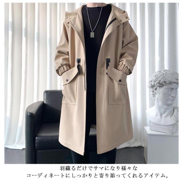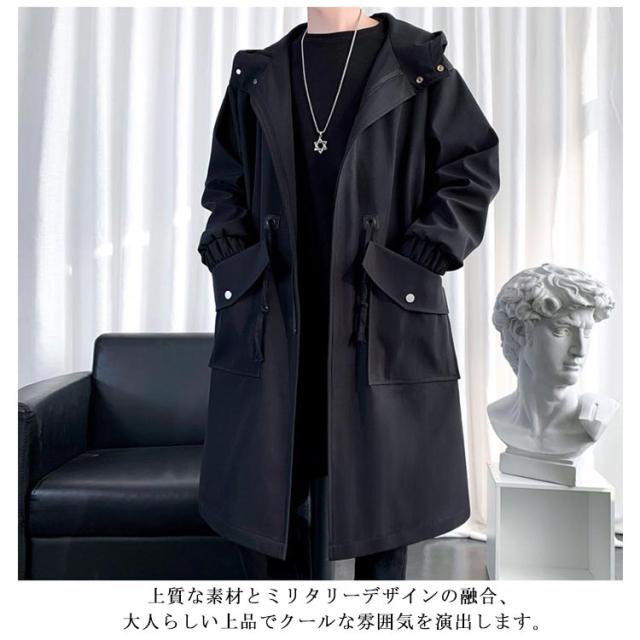 防風 スタイリッシュ フード付き ロングコート メンズ ライトアウター ストリート系 ミリタリー 防寒 大きいサイズ 着こなし モッズコート ジャケット ロング丈 ブルゾン オーバーサイズ 春秋 ポケット付き 送料無料