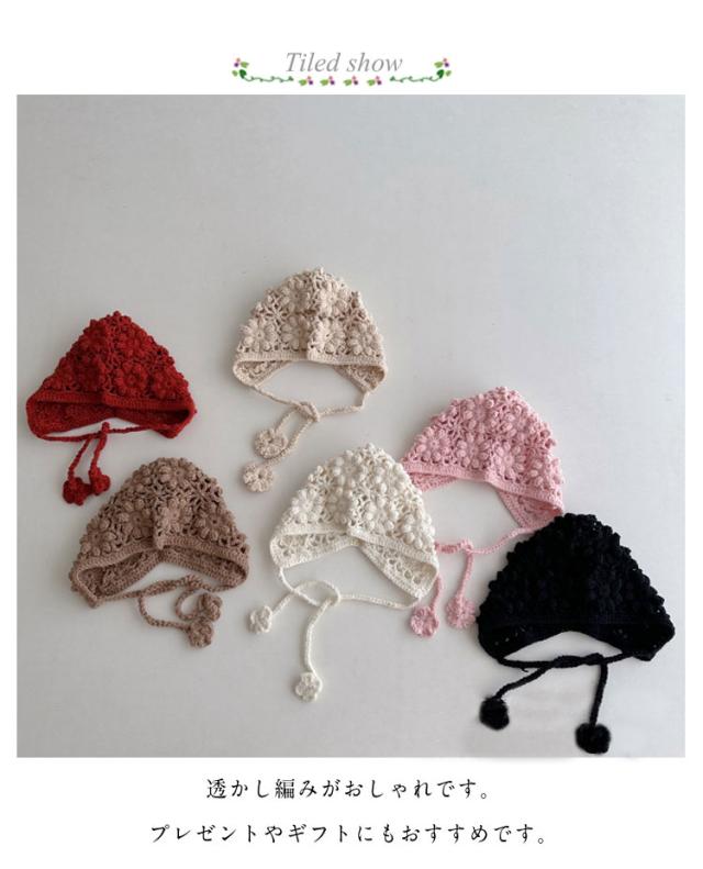 透け編み 透け編み 帽子 ナチュラル 帽子 ベビー ニットボンネット 韓国子供服 ボンネット シンプル 0歳 柔らかい 子供 ニットキャップ ベビーキャップ あご紐 アクセント フリーサイズ 女の子 1歳 ギフト