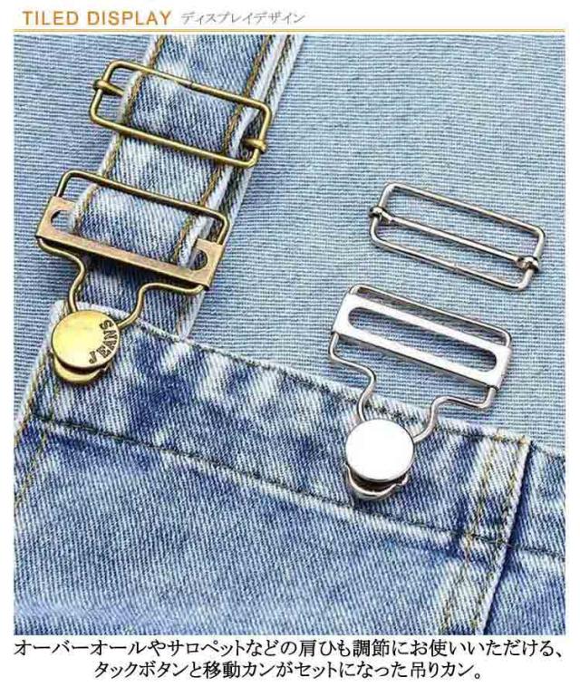 吊りカン 2組入 移動カン タックボタン ジーンズ オーバーオール サロペット 金具 デニム サスペンダー ツナギ 吊りかん 手作り 補修 修理 つりかん 手芸用品 ハンドメイド リメイク 手づくり 金具 修復 部品 部材 つりかん 吊りかん パーツ 送料無料