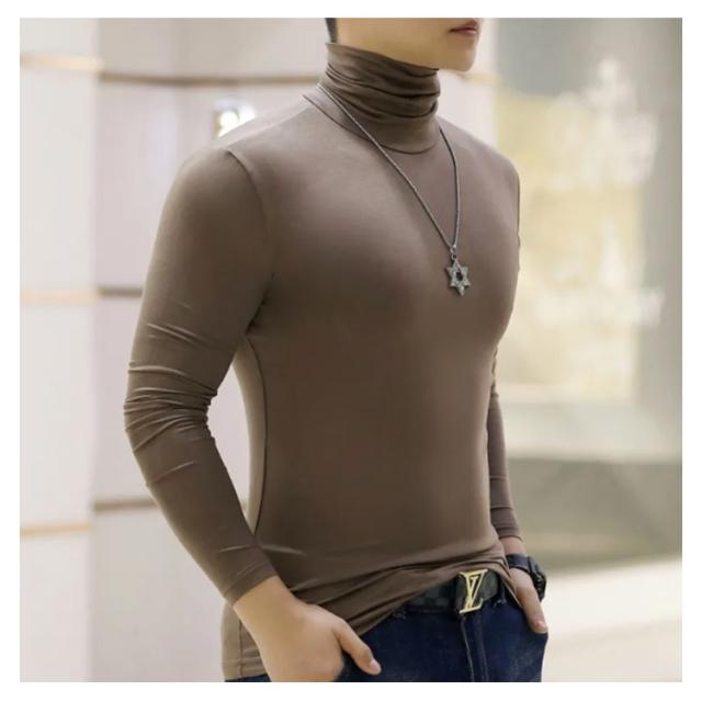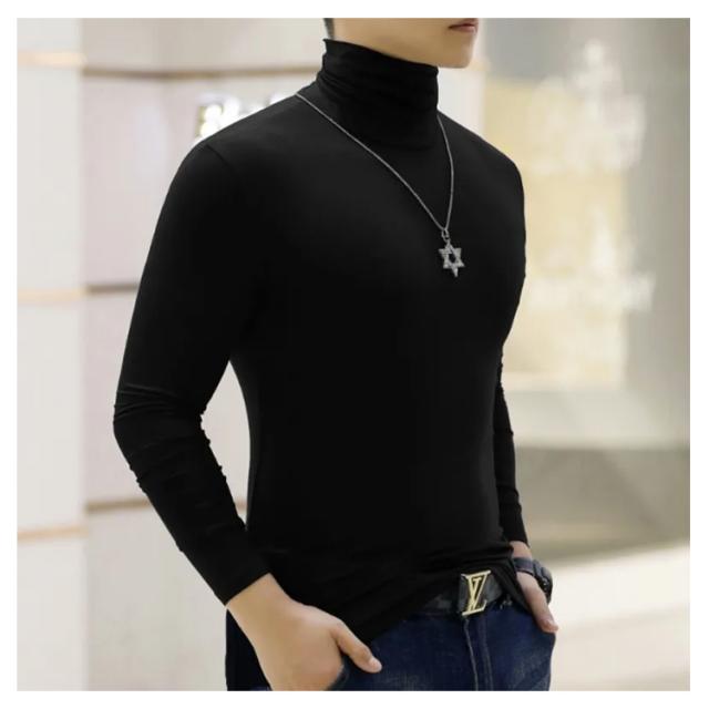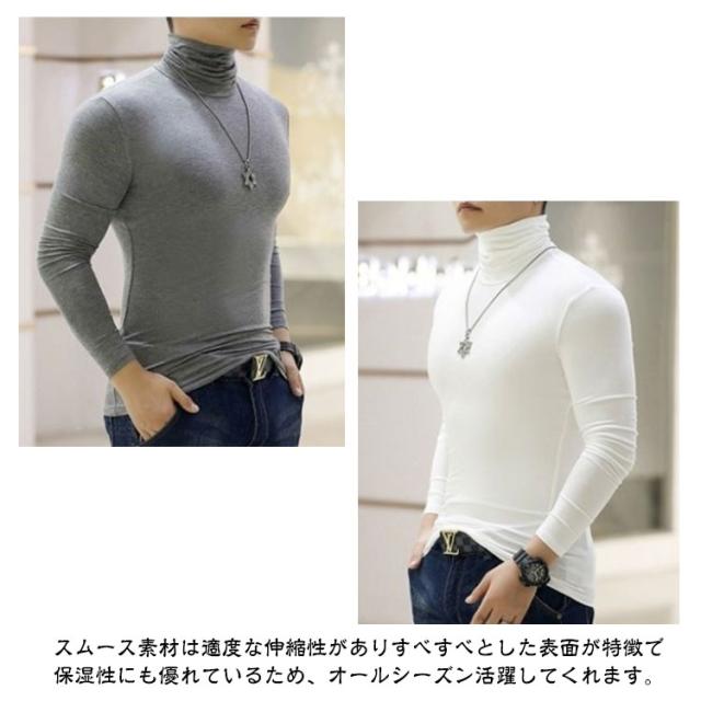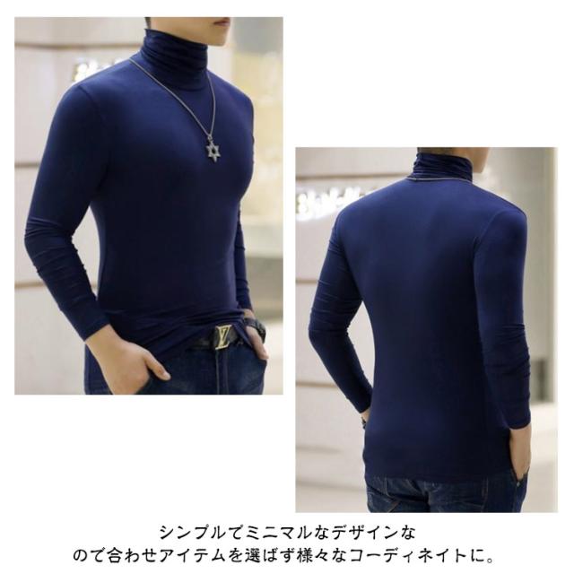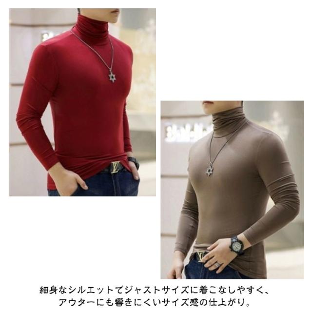 長袖 2枚セット メンズ タイト 2枚セット タートルネック カットソー ストレッチ ハイネック インナーシャツ ロンT 細身 ハイネックtシャツ 長袖tシャツ 春 秋 冬 トップス 防寒 男性 肌着 モーダル生地 綿