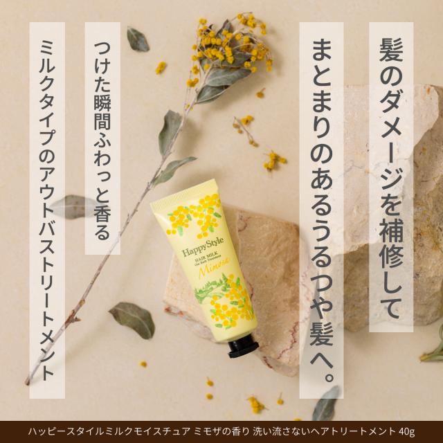 ハッピースタイルミルクモイスチュア ミモザの香り 洗い流さないヘアトリートメント 40g【レビューを書いてポイント+3%】