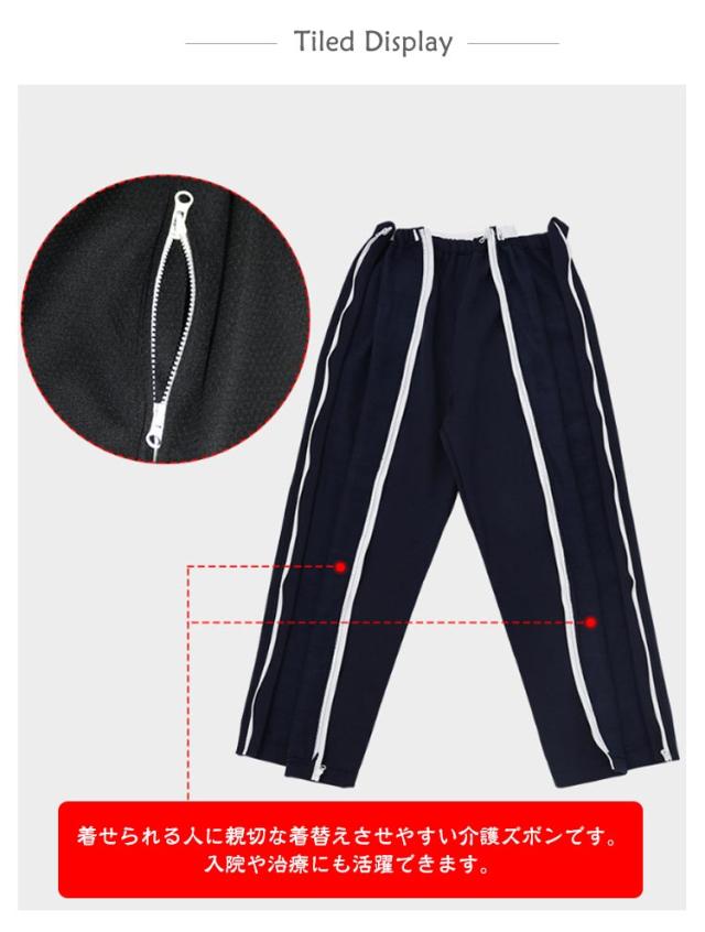 | M-2XL!介護用ズボン。両側にファスナーが付いているためフルオープンが可能です。 今まで困難だったパンツの着替えをスムーズに。そんな願いから生まれたのが、このパンツです。 着せられる人に親切な着替えさせやすい介護ズボンです。入院や治療にも活躍できます。 | |