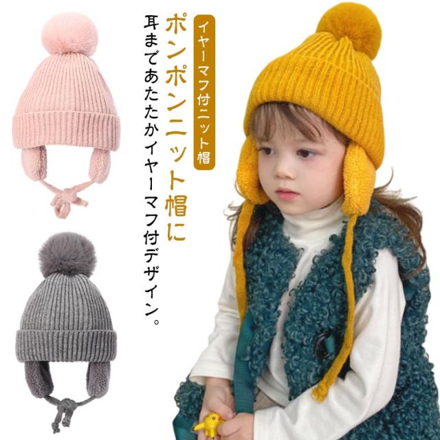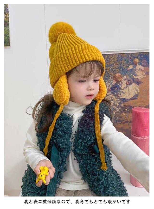 耳あて ニット帽 秋冬 男の子 ふわふわ ボア 帽子 防寒帽子 柔らかい ベビー 子供用 ベビー ポンポン 女の子 キッズ 冬用ハット 男女兼用 ベビーニット帽 赤ちゃん 女の子 男の子 ニット帽 帽子 もこもこ 無地 耳保護付き 暖かい かわいい 防風 防寒