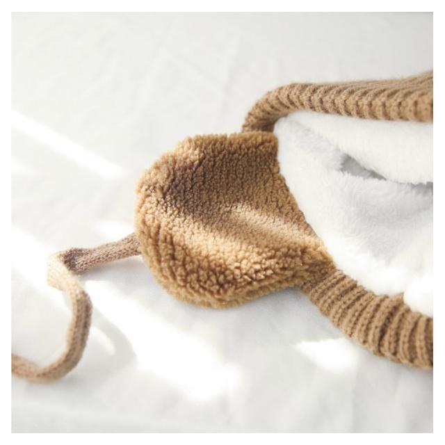 | イヤーマフ付ニット帽 ポンポンニット帽に耳まであたたかイヤーマフ付デザイン。 耳保護付きなので、頭と耳をしっかりカバーして防寒できます。 裏と表二重保護なので、真冬でもとても暖かいです。 | |