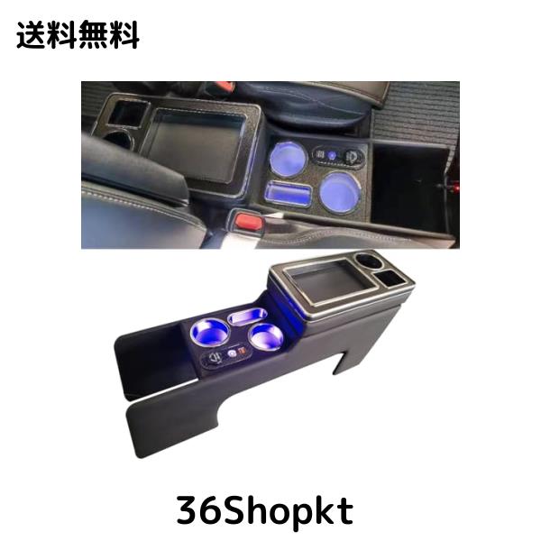 【最新型コンソールボックス】:1.ブルーのLED灯が付き、夜車内が暗い時、小物を探すことに便利になります。車内の灯を開けることが要らなく、運転の安全を確保する。2.前席+後席に 5口USBポートを増設、後部座席の乗客にも便利になります。3.収納も大容量!ティッシュボックスやマスク、スマホなど様々な物を収納できます。