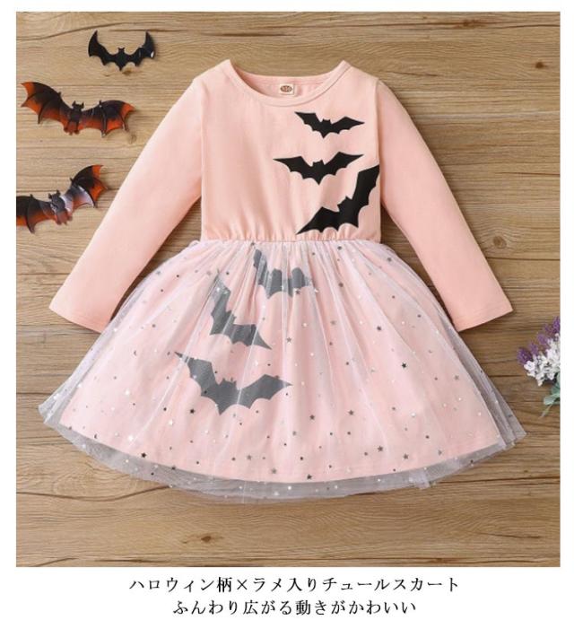 ベビー 仮装 子供 ダンス ラメ入り かぼちゃ ハロウィン キッズ 子ども おばけ コスプレ 100 110 120 130 コウモリ 90 服 女の子 衣装 長袖 赤ちゃん フォト コスチューム ハロウィン ワンピース グッズ 子供服 月齢 キッズ かわいい