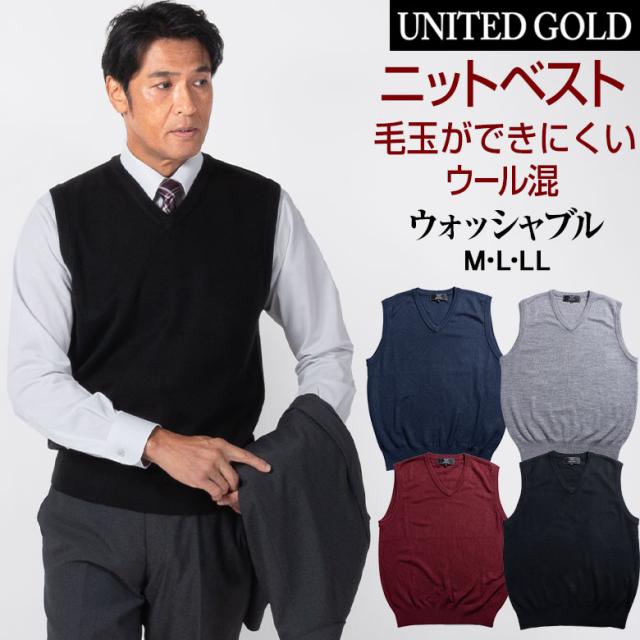 ニットベスト メンズ Vネック ビジネス カジュアル ウールアクリル混 ウールブレンド ウォッシャブル 抗ピル繊維 毛玉ができにくい 送料無料 メール便 ミエル Vネックベスト ウールブレンド ウール混 洗える 毛玉ができにくい knit20〈メール便〉 ※お使いのパソコンモニタやスマートフォンの機種、ブラウザによって実際の商品の色とは異なって見える場合がございます。ご了承ください。UNITED GOLD ユナイテッドゴールド UNITEDGOLD