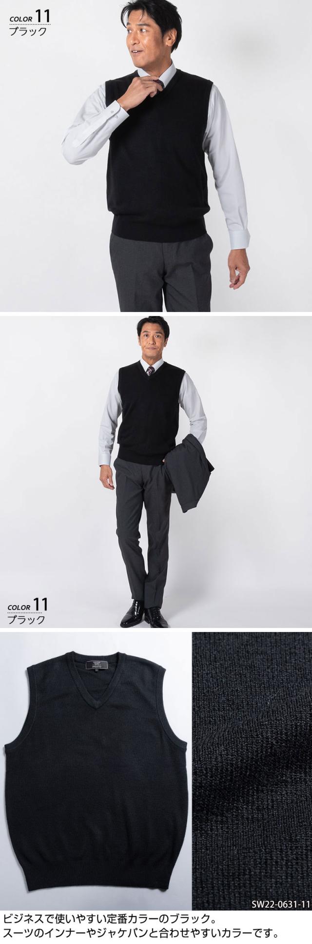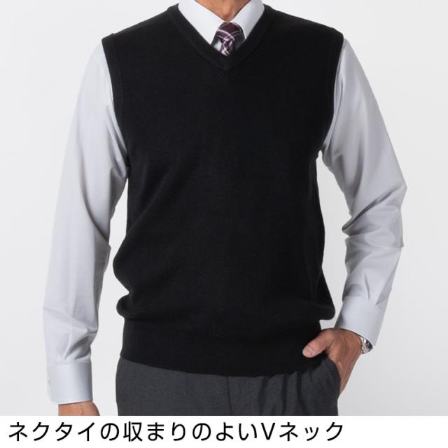 ニットベスト メンズ Vネック ビジネス カジュアル ウールアクリル混 ウォッシャブル 毛玉ができにくい 送料無料 メール便