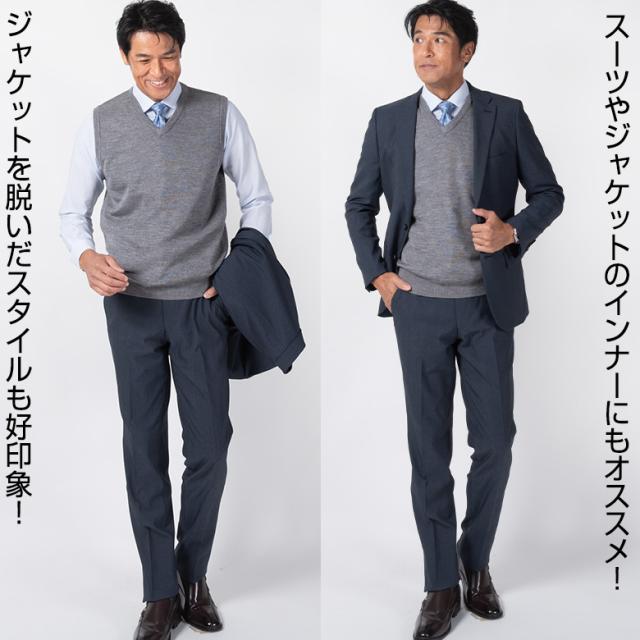 秋冬春は、Vゾーンが映えるおすすめのVネックベスト。