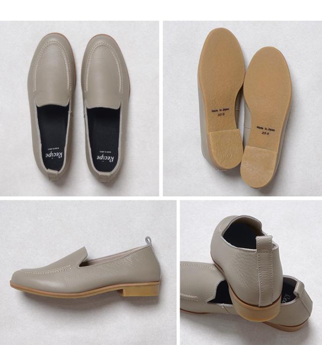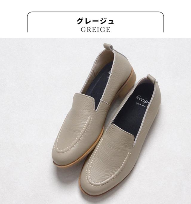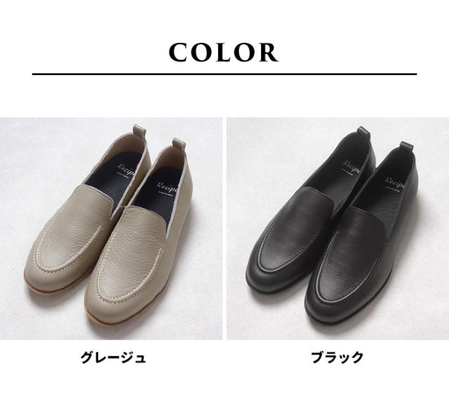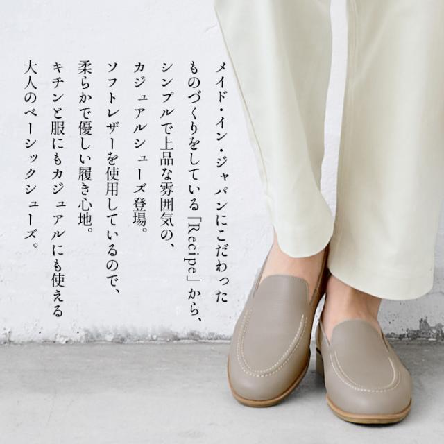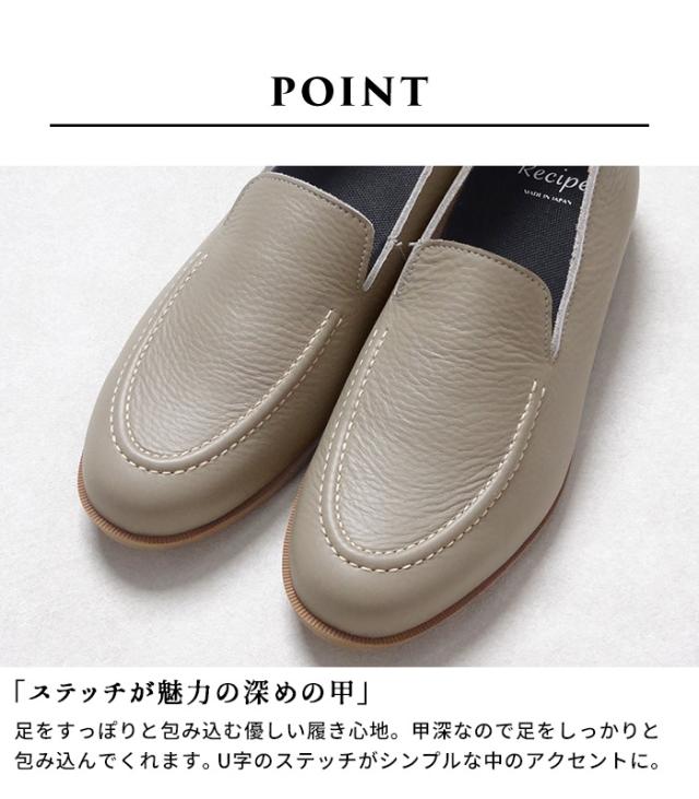 特徴 足をすっぽりと包み込む、やさしい履き心地のカジュアルシューズ。メイド・イン・ジャパンにこだわったものづくりをしている「Recipe」から、シンプルで上品な雰囲気の、カジュアルシューズ登場。ソフトレザーを使用しているので、柔らかで優しい履き心地。キチンと服にもカジュアルにも使える大人のベーシックシューズ。