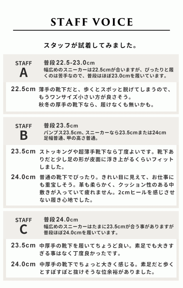 サイズ 22.5cm / 23.0cm / 23.5cm / 24.0cm / 24.5cm
