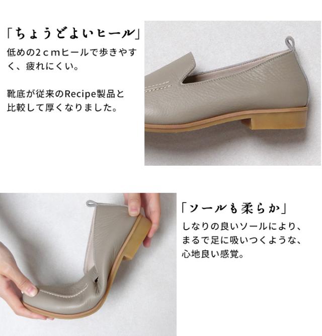 オペラシューズ レディース 痛くない 柔らかな 本革 2cmヒール ステッチモカ Recipe RP-549 日本製 40代 50代 60代 婦人靴 ローヒール 疲れにくい ラウンドトゥ 大人 レザーシューズ 革靴 2E相当 牛革 歩きやすい フォーマル カジュアル オフィス レシピ カジュアルシューズ レザーシューズ 2E おしゃれ オシャレ レシピ ブラック 黒 グレージュ