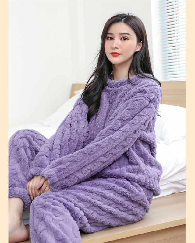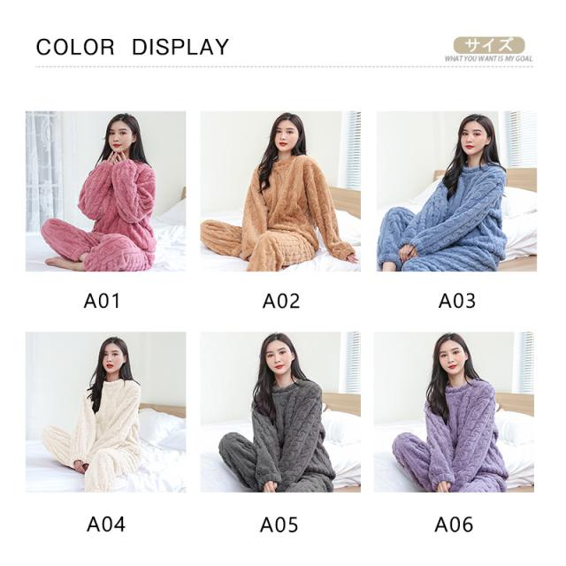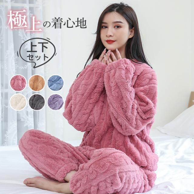 もこもこパジャマ レディース 厚手 ゆったり 寝間着 可愛い 冬 部屋着 長ズボン 長袖 プルオーバー 上下セット ふわふわ 柔ら