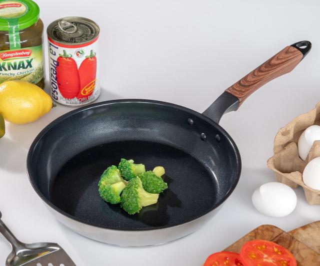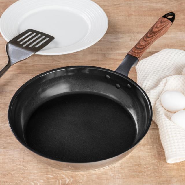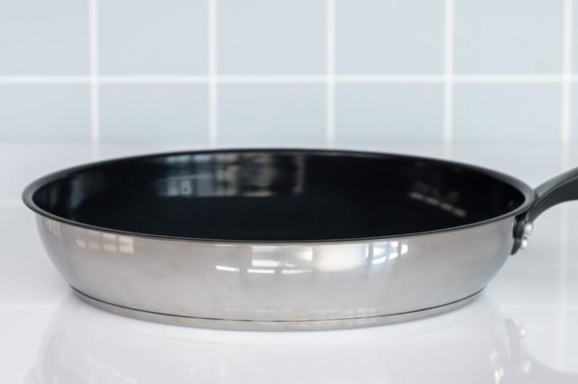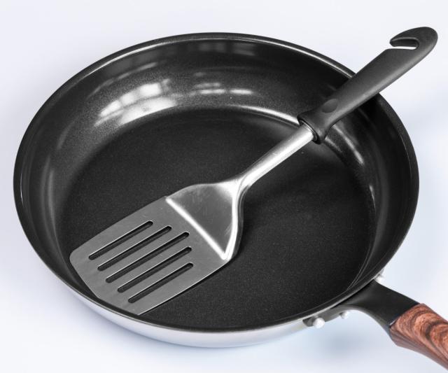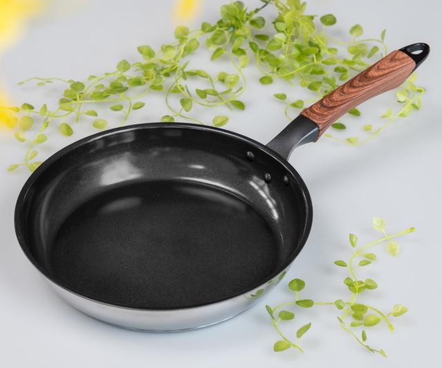 フッ素樹脂使用せず、セラミック加工を施したフライパンです。フッ素加工と同様、食材がこびりつきにくく、汚れが落ちやすいので気軽に使えます。