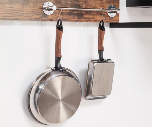 取っ手の先端に引っ掛け穴が付いているので、壁面に吊るして収納することができます。