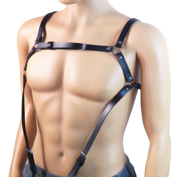 自分のスタイルを一層引き立てる、メンズ用PUレザー製チェストハーネスです。