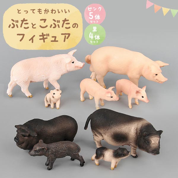 送料無料 2カラー ぶた こぶた フィギュア 5体 4体 セット 動物 アニマル インテリア 置物 デコレーション アート 豚 ピッグ 子豚