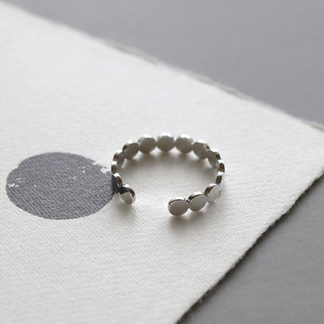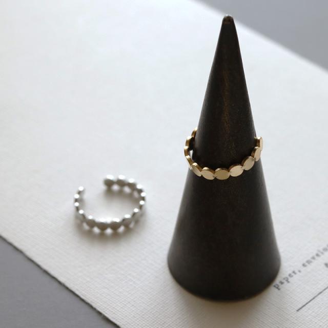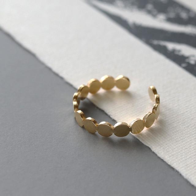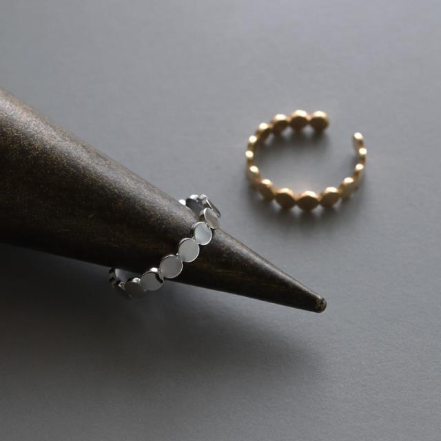 | 丸みのあるシルエットが可愛らしいピンキーリングです。 フラットな丸プレートを連ねたシンプルなデザイン。 光の反射でさりげなく煌めき、上品な手元を演出してくれます。 | |