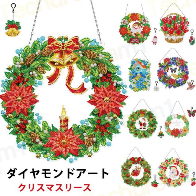クリスマスリース ダイヤモンドアート DIY キーホルダー キット ダイヤモンド絵画 クリスマスオーナメント クリスマスリース キラキラ 可愛い 飾り 手作り絵画手芸キット ダイヤモンド アート 子供 大人 初心者へモザイクアート クリスマス置物