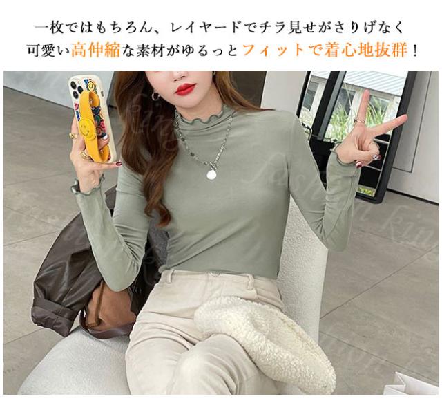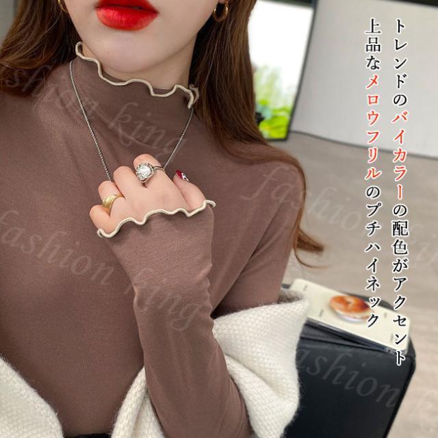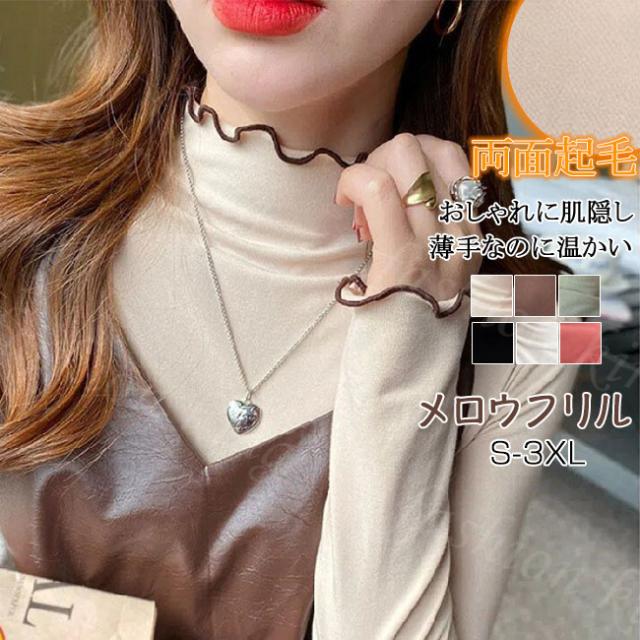 <2点まとめ買いで送料無料> メロウ ハイネック カットソー Tシャツ 両面起毛 秋冬 秋新作 送料無料 タートルネック メロウフリル 高伸縮 微起毛 裏起毛 レディース ストレッチ 柔らか コーデ インナー シアー レイヤード あったか ブラウス 秋物早割 バレンタインデー