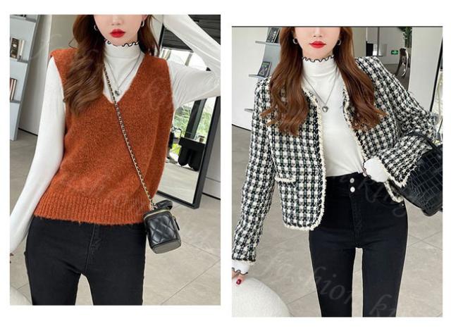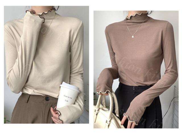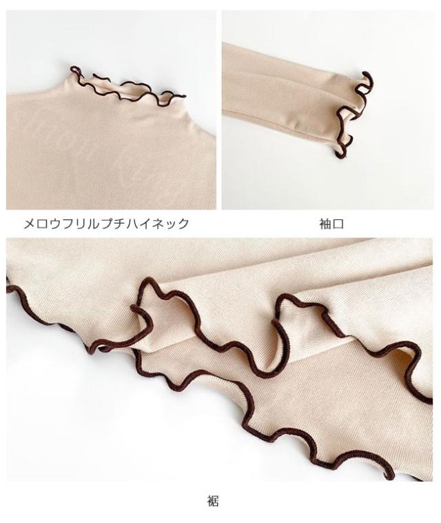 プチハイネックとフリルデザインは可愛いておしゃれ。