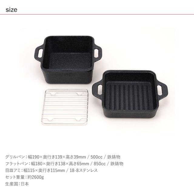 グリルパン:幅190×奥行き139×高さ39mm / 500cc