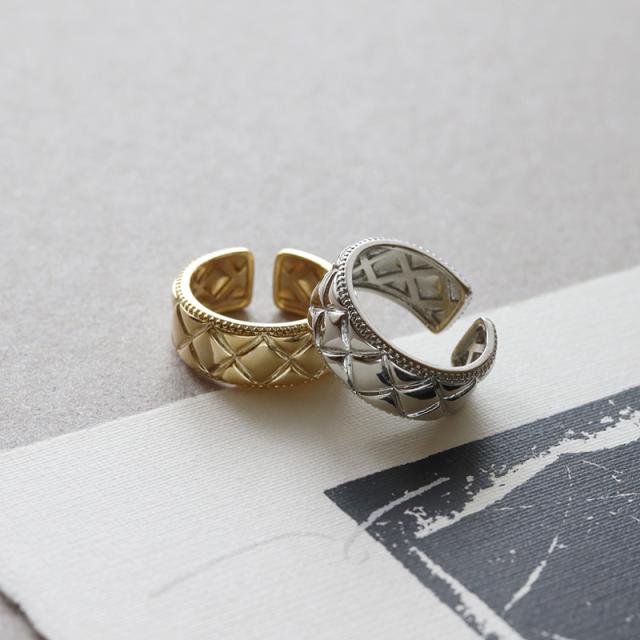 指輪 リング レディース ニッケルフリー 金属アレルギー ワイド 幅広 キルティング 格子柄 チェック 13号 フリーサイズ ゴールド シルバー オケージョン 女性