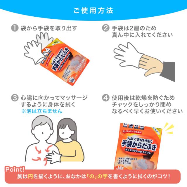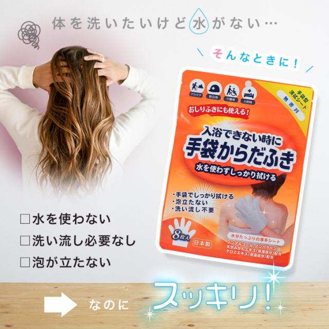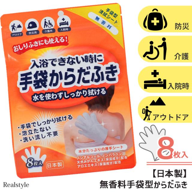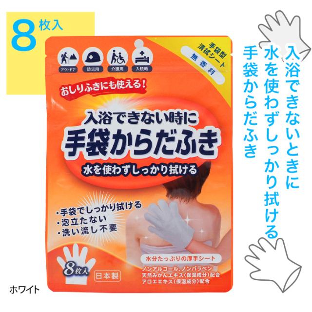 【日本製】手袋型無香料からだふき(8枚入り) 体拭きシート おしりふき 防災 入院 介護 長期保存 水なし 低刺激 ノンアルコール パラベンフリー 災害 避難時 非常時 備蓄 ケガ エチケット 防災用品 衛生 お尻拭き 体拭き 水のいらない 泡立たない 水不要 拭くだけ 子供 シニア 大人 汗 運動 スポーツ アウトドア 介護施設 怪我 緊急用 災害時 断水 電子レンジ 洗い流し不要 身だしなみ 備え 全身 アルコールフリー ノンパラベン 保湿 地震 津波 停電 水害 台風 豪雨 家庭 自宅 会社 会社の備蓄 災害用 地震対策 安心 被災 震災 火事 火災 緊急事態 帰宅困難 車中泊 車内 車載 新生活 一人暮らし ひとり暮らし 緊急避難 家族 母の日 父の日 敬老の日 贈り物 プレゼント ギフト 収納 保管 簡単 年末 年始 新年 見直し 社内 職場 学校 便利 便利グッズ サバイバル レスキュー レンジ可能 温められる ニオイが気になった時 お風呂に入れない 爽快感 スッキリ スッキリ リフレッシュ リフレッシュ サッパリ セット 国産 男性 女性 メンズ レディース 旅行 トラベル キャンプ レジャー 野外 部活 クラブ ホテル ジム ヨガ トレーニング まとめ買い