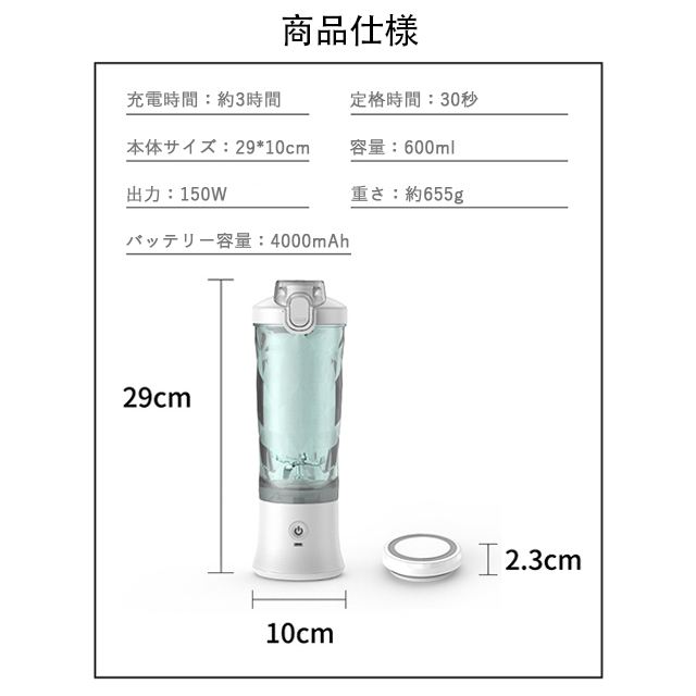 ジューサーミキサー ミキサー 小型 コードレス お手入れ簡単 ジューサー 大容量 600ml usb 氷も砕ける スムージー コンパクト 携帯ミキサー コーヒーミル 持ち運び 洗いやすい おしゃれ 操作簡単 USB充電式 ブレンダー 送料無料 子供 プレゼント ギフト