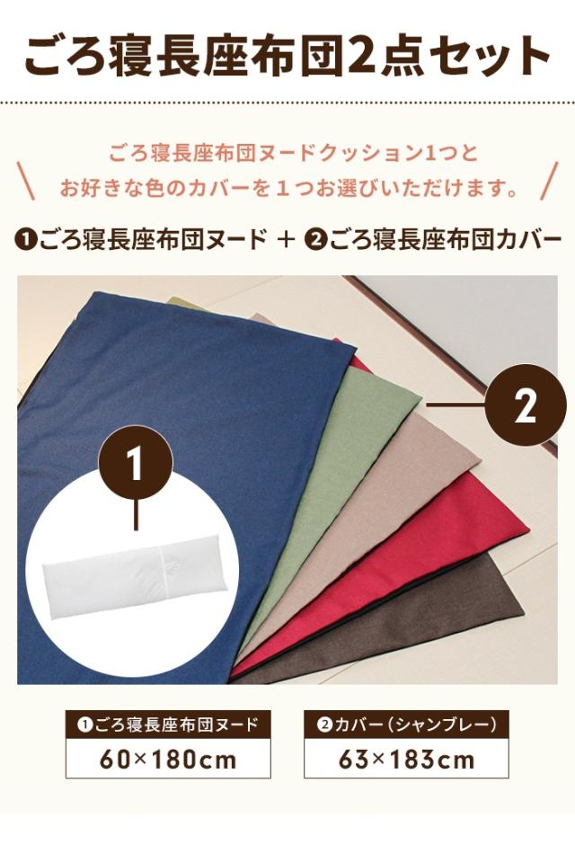【値下げ】長座布団 180 日本製 ごろ寝マット ヌードクッション+カバー 60×180cm 座布団 クッション ざぶとん おしゃれ ファブリック シートクッション 片側 シャンブレー 無地 マットロング ごろ寝 お昼寝 車用 車載 シート ペット用 新生活 一人暮らし