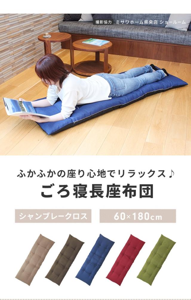 【値下げ】長座布団 180 日本製 ごろ寝マット 60×180cm 座布団 クッション ざぶとん おしゃれ ファブリック シートクッション 片側 シャンブレー 無地 マットロング ごろ寝 車用 車載 シート ペット用 インテリア 北欧 アメカジ 長方形 新生活 一人暮らし