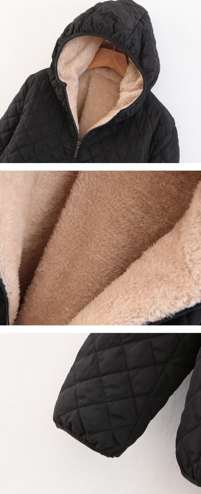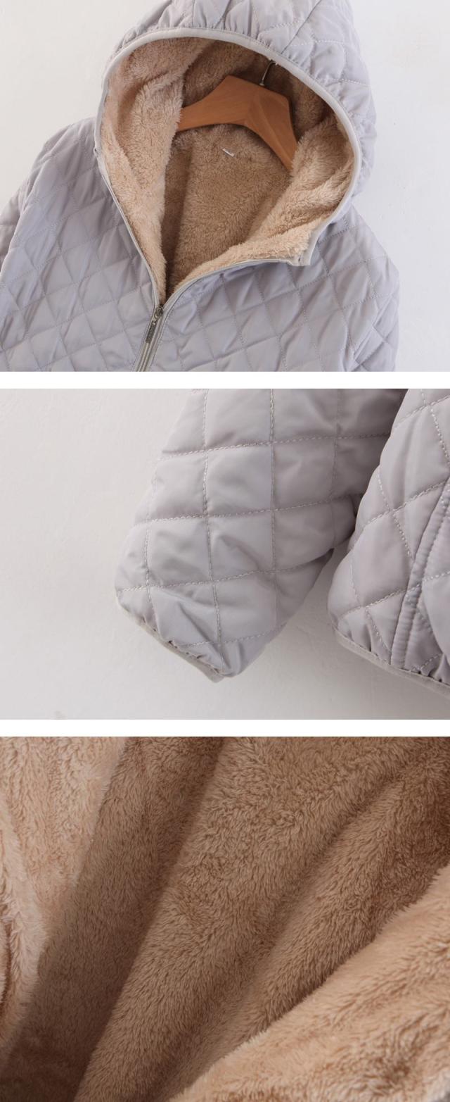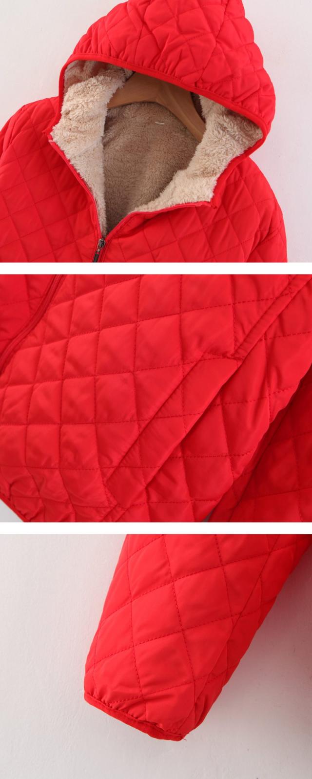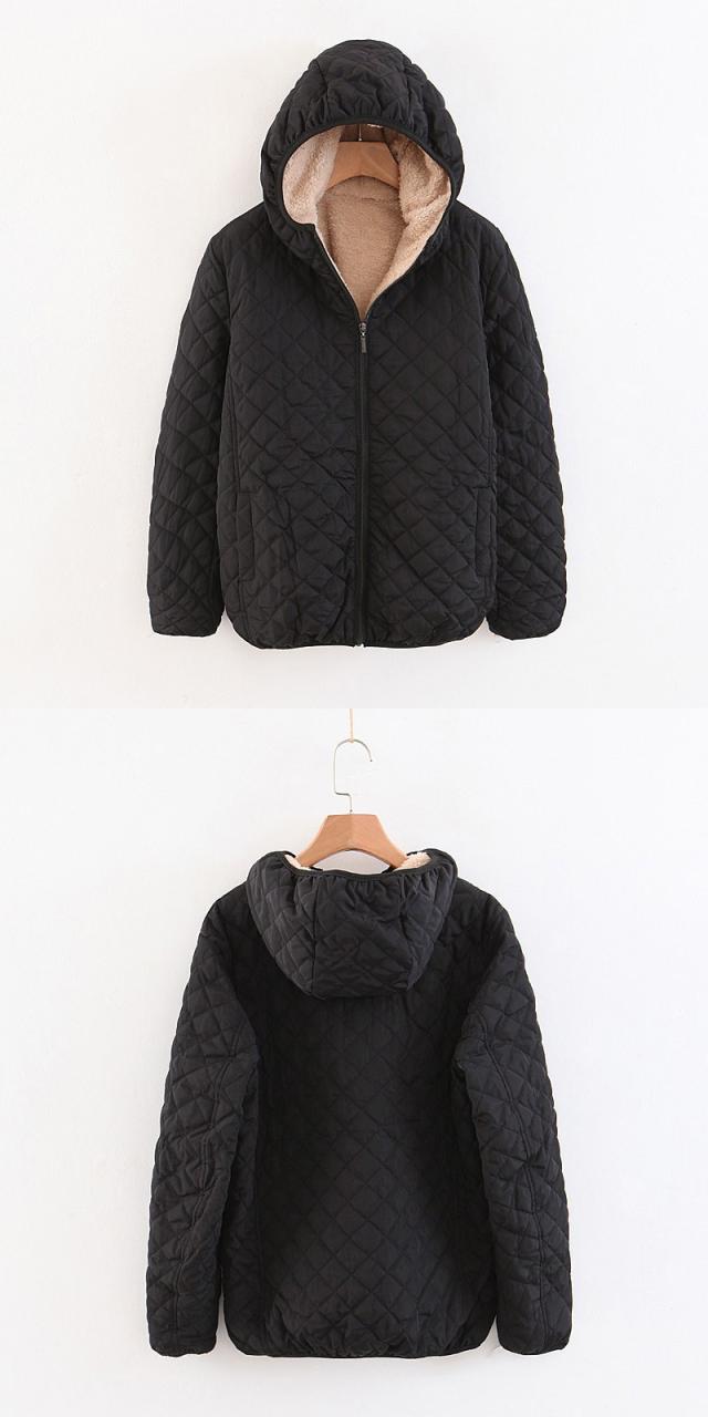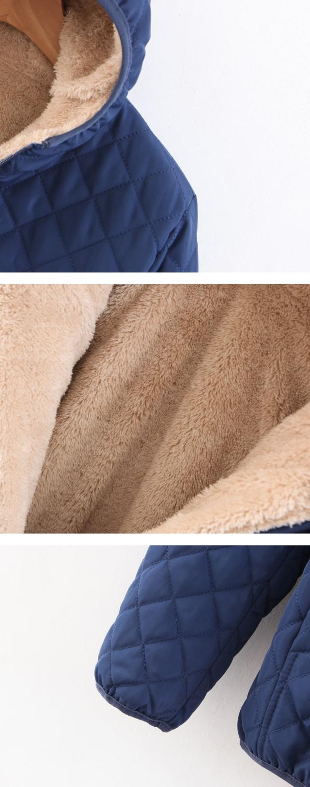 - キルティングが可愛く、シンプルなデザインなので男女問わず着られます。フード付きで風も防げて便利