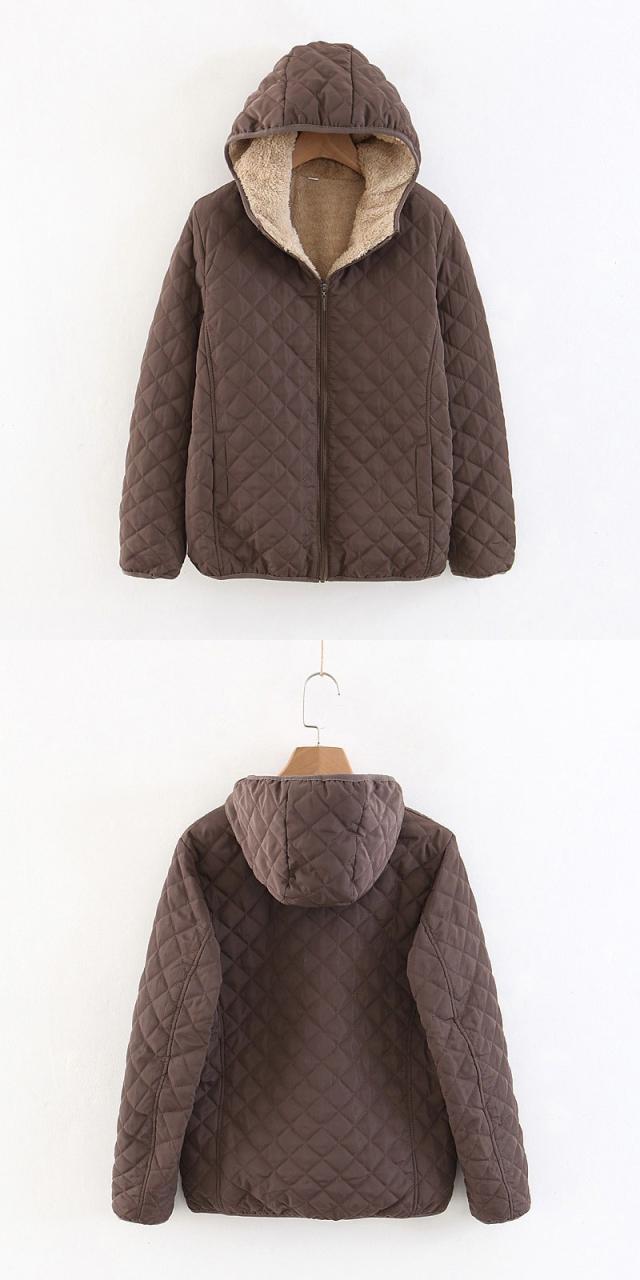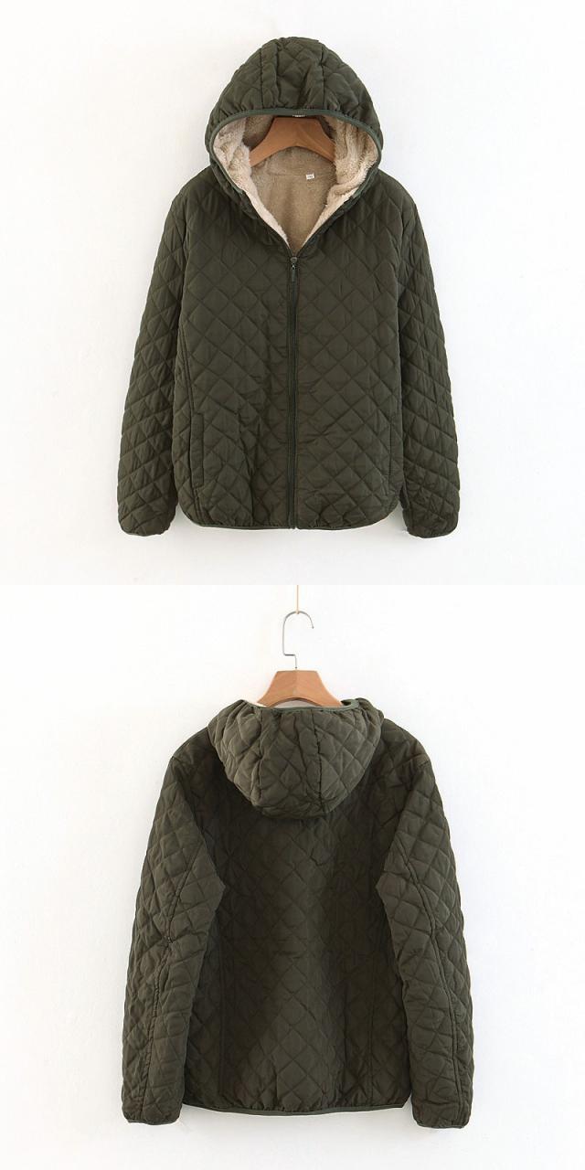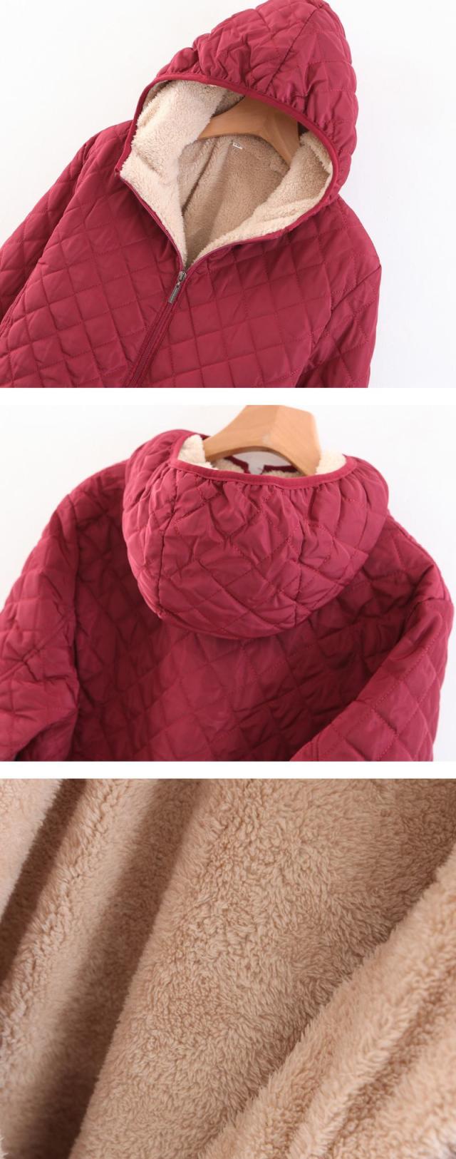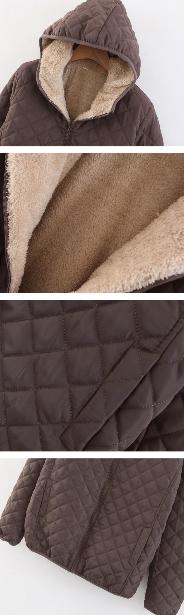 - キルティングが可愛く、シンプルなデザインなので男女問わず着られます。フード付きで風も防げて便利