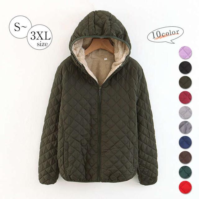 コート レディース メンズ 冬 秋 裏ボア アウター キルティング フード付き 大きいサイズ あったか 防寒 防風 秋冬 中綿 ジャケット ジップアップ ブルゾン パーカー キルト 裏起毛 長袖 洗える 無地 ポケット付き パーブル カーキ ブラック 女性 男性 通勤 秋新作