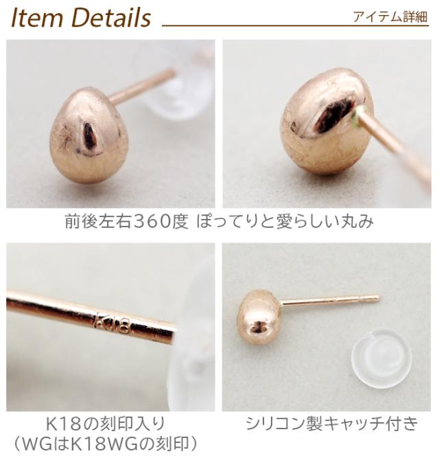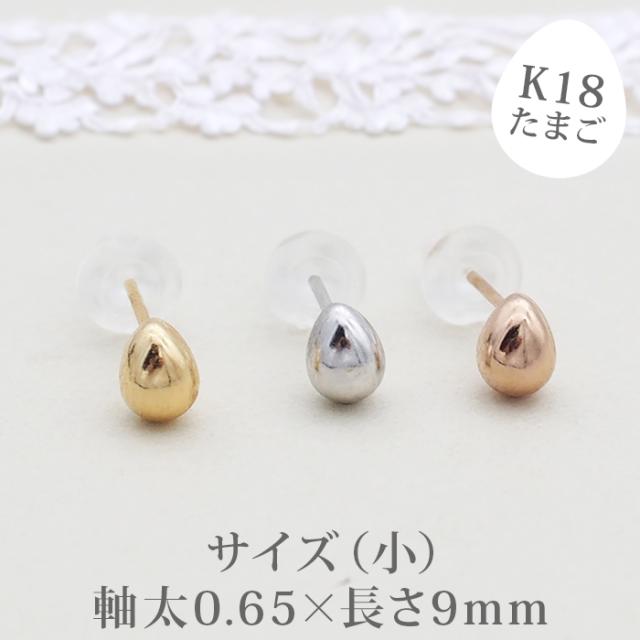 つけっぱなし ピアス 18K セカンドピアス アレルギー対応 たまご エッグピアス 小 ゴールド 軸太0.65×長さ9mm 18金 片耳 1個