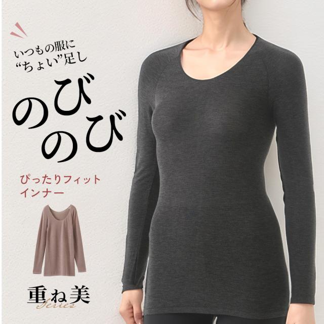 重ね美 のびのび ぴったりフィット 長袖 ラウンドネック 暖か 女性 婦人 下着 肌着 秋冬 24AW K6570P-E