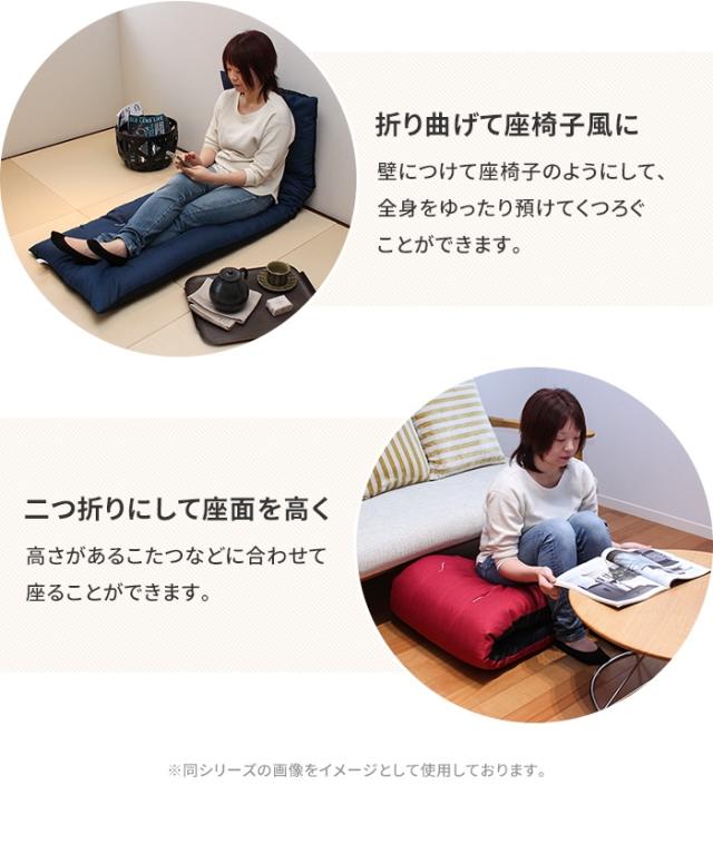 座ったり、ごろ寝したり、赤ちゃんのお昼寝マットとしたり、壁にあてて座椅子代わりにしたり、ペットのお座敷座布団としても◎