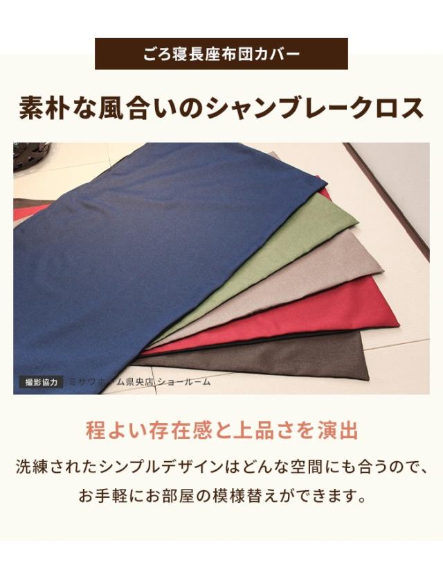 【値下げ】長座布団 180 日本製 ごろ寝マット ヌードクッション+カバー 60×180cm 座布団 クッション ざぶとん おしゃれ ファブリック シートクッション 片側 シャンブレー 無地 マットロング ごろ寝 お昼寝 車用 車載 シート ペット用 新生活 一人暮らし