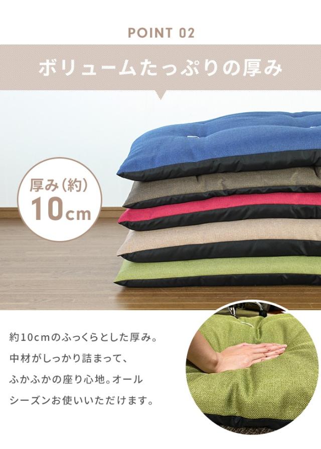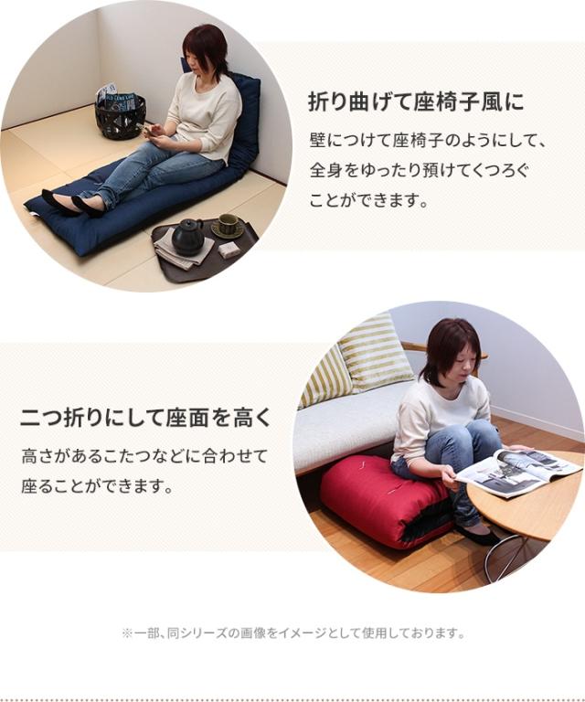 座ったり、ごろ寝したり、赤ちゃんのお昼寝マットとしたり、壁にあてて座椅子代わりにしたり、ペットのお座敷座布団としても◎