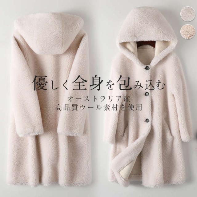コート ボア ウール レディース ロング ボアコート ファーコート ロングコート ボアブルゾン 冬アウター 秋冬 ボアロングコート 防風アウター ウールコート フードコート 防寒 暖か ビッグシルエット 体型カバー 冬 真冬 アイボリー ベージュ 通勤 デート 日常 冬コーデ