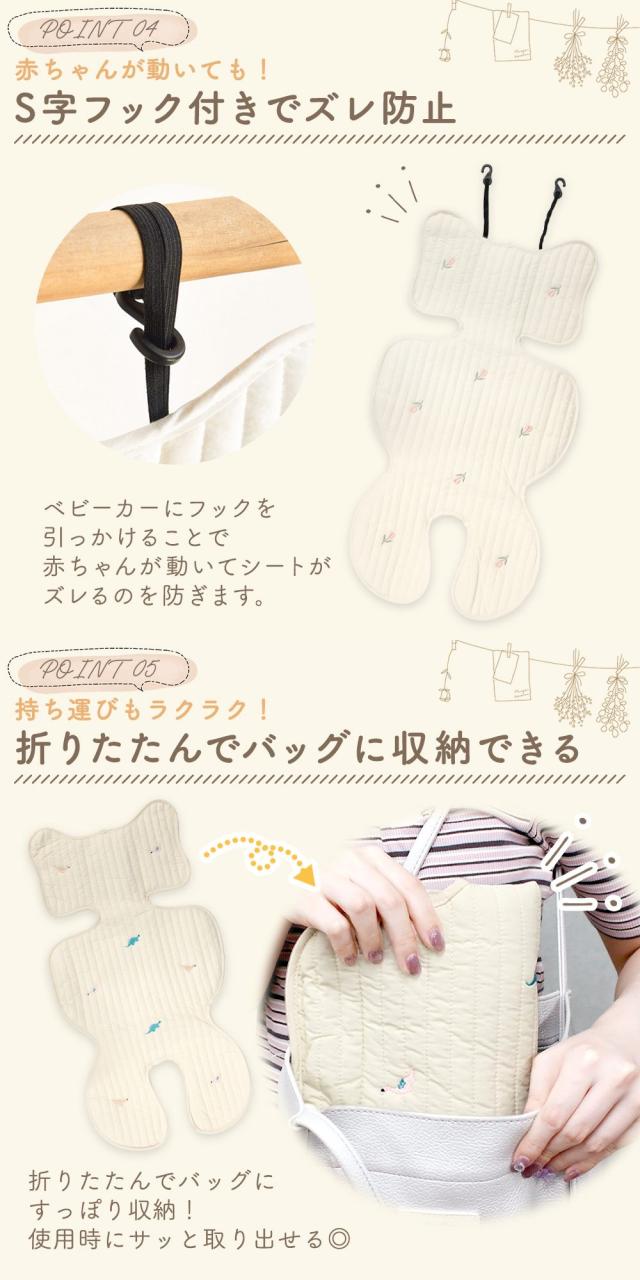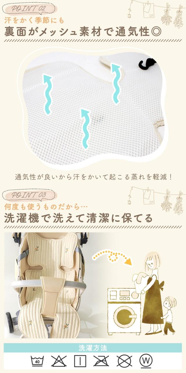 ベビーカーシート キルティング シートクッション 快適 蒸れない 通気性 洗える 洗濯可能 折りたたみ 収納 持ち運び 綿100% コットン メッシュ 新生児 春夏 オールシーズン 秋冬 チャイルドシート 赤ちゃん かわいい おしゃれ 男の子 女の子 贈り物 ギフト MILASIC