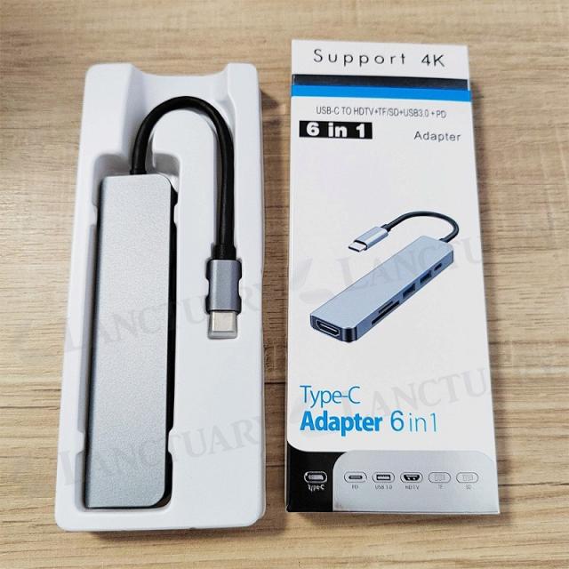 この多機能ハブは、PD充電ポート×1、4K HDMIポート×1、Micro SD/TFカードリーダー×1、SDカードリーダー×1、USB 3.0×1、USB 2.0ポート×1を備えており、