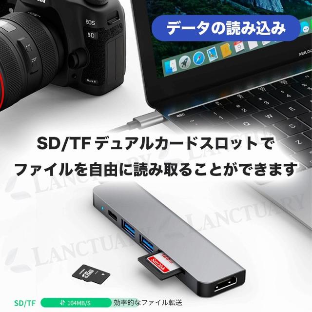 | 商品の説明 | この多機能ハブは、PD充電ポート×1、4K HDMIポート×1、Micro SD/TFカードリーダー×1、SDカードリーダー×1、USB 3.0×1、USB 2.0ポート×1を備えており、 Nintendo Switch/MacBook/MacBook Pro/Air/iPhone15/15Pro/ChromeBook/Surface GO/Pro7などに対応しています。 簡単な接続で利用可能です。 また、SDXCカード/TFカードをサポートするカードリーダーを搭載し、TF/SDスロットを通じて高速データ読み取りができます。 アルミ合金素材で堅牢かつ軽量なのも特長です。 USB 3.0ポートが最大5Gbpsのデータ伝送速度を提供し、USB 2.0の約10倍の転送速度を実現します。 HDMI動画も数秒で伝送可能で、USB-C HDMI変換器で最大解像度4K(3840x2160P)30Hzに対応。 逆電流保護や過大電流衝撃保護、電圧過負荷保護などの多重保護も搭載され、 安心してご利用いただけます。 便利な機能が詰まったUSB-Cハブで、デバイスの拡張と高性能な接続を実現しましょう。 |