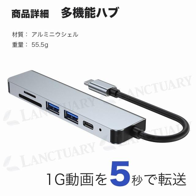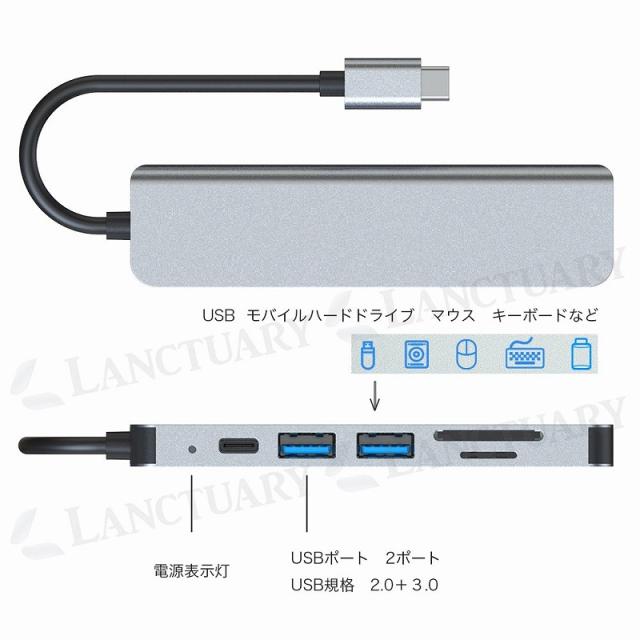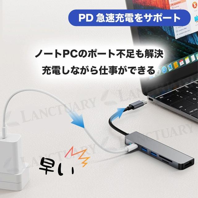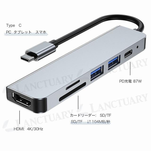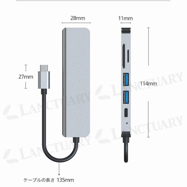 多機能 ドッキング ハブ HDMI 4K USB SD カードリーダー 6in1 超軽量 薄型 変換アダプター ノートパソコン PC Type-Cケーブル ドッキングステーション agesugi_sog