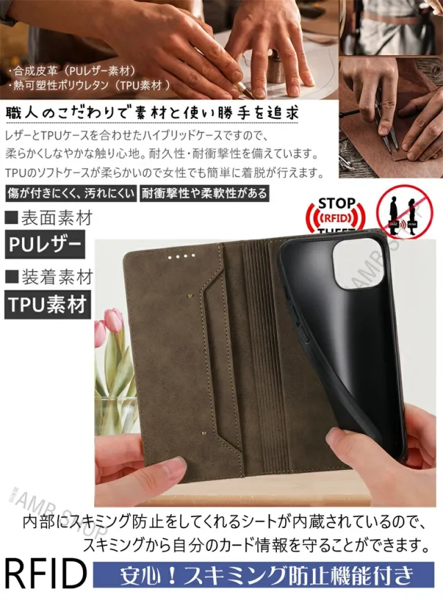 RFIDスキミング防止 iPhone 14 ケース 手帳型 大人 シンプル アイフォン iPhone 16 15 14 13 Pro Max Plus スマホケース iPhone16 16Plus 16Pro 16ProMax iPhone15 iPhone14 ケース手帳型 スマホケース 携帯 カバー おしゃれ 耐衝撃 マグネット ベルトなし カード収納