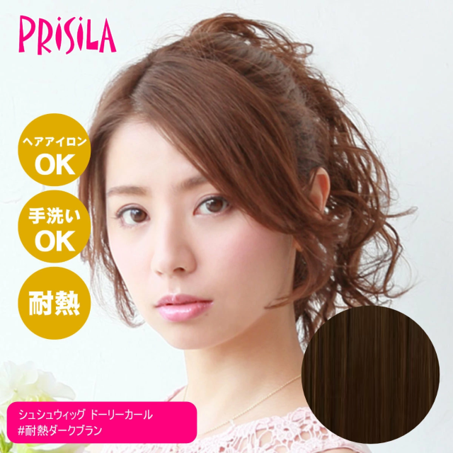 [バレないウィッグ]プリシラ シュシュウィッグ ドーリーカール VS-32-TDB #耐熱ダークブラン[メール便発送OK] (6058436)[日本製耐熱ファイバー124% ヘアアイロンOK 手洗いOK][GTT]